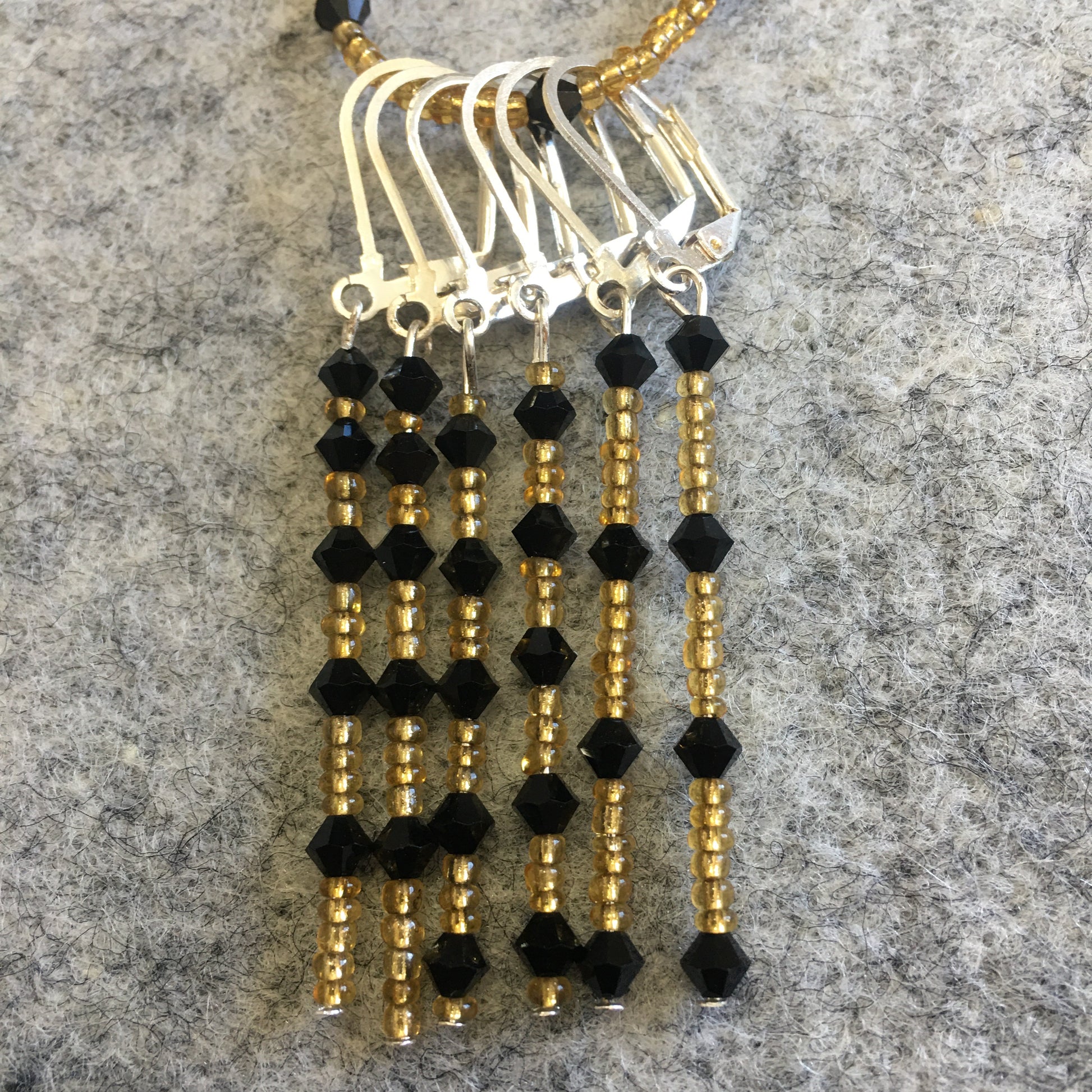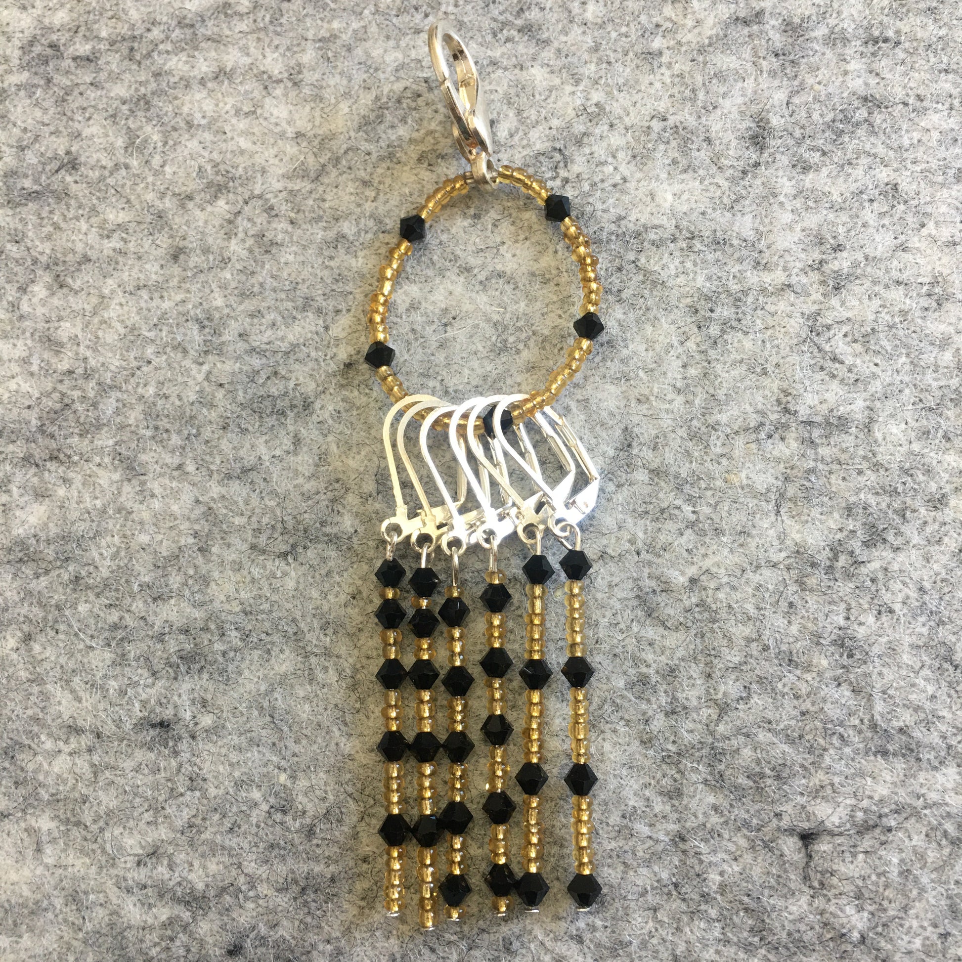 Art Deco Black Gold Stitch marker Sets with matching keeper clip