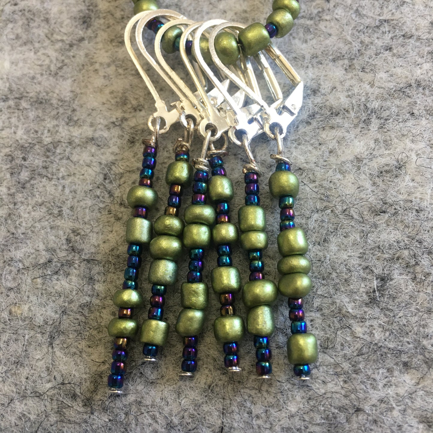 Blue Iridescent Green Stitch marker Sets with matching keeper clip