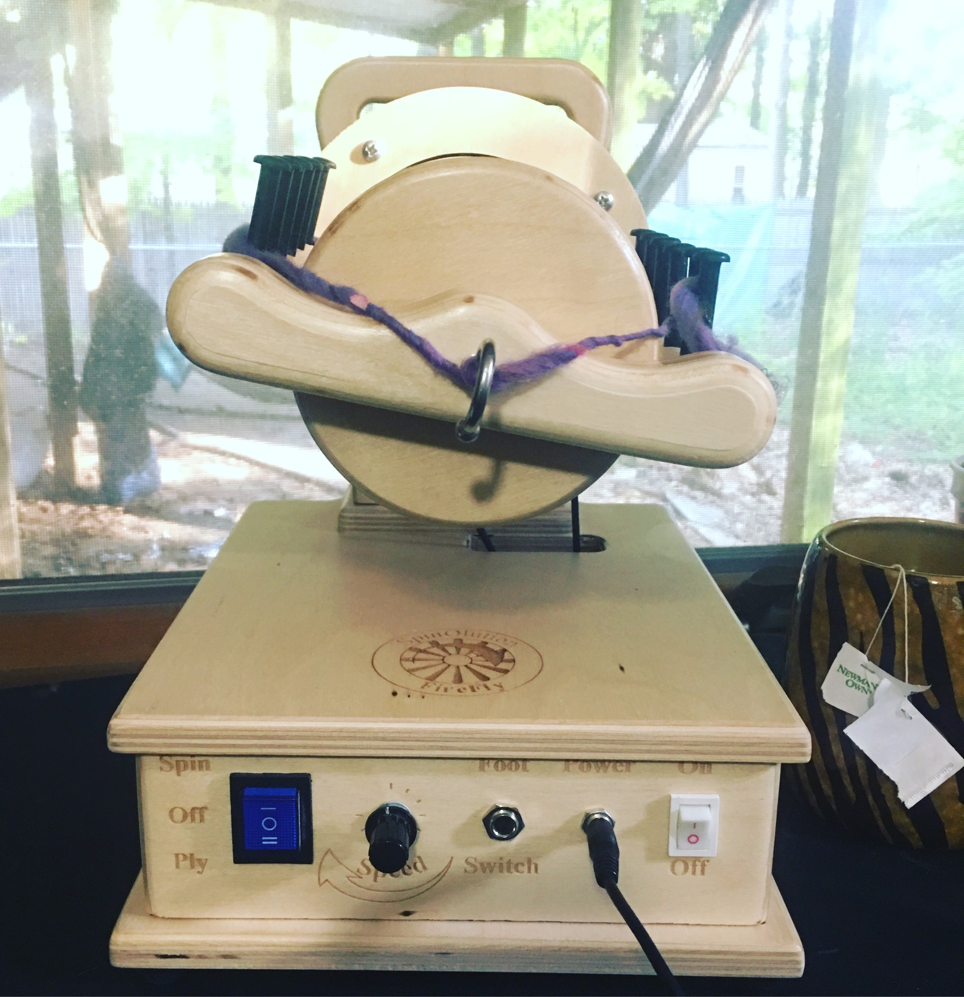 8 ounce bobbin/flyer. Drop ships 6-8 weeks from Spinolution. Made in USA. Built in battery. Multiple bobbin/flyer sizes. I can’t stop spinning on it! Excellent production spinner with built in 14 hour battery! Comes with ac charger, foot pedal (not required but handy/footy?) , and dc car charger. Add the Paulywinder for a truly automatic spinning experience.