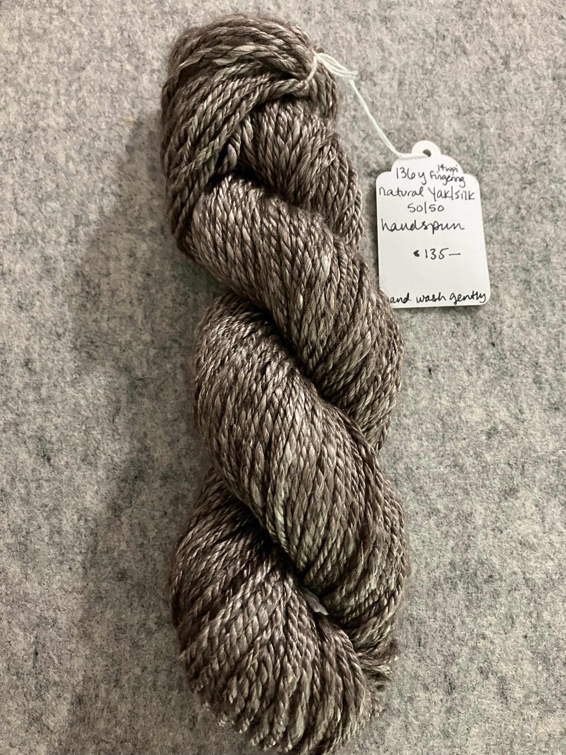 Fingering (14wpi) Handspun, chain plied, Yak/Silk (50/50) yarn.